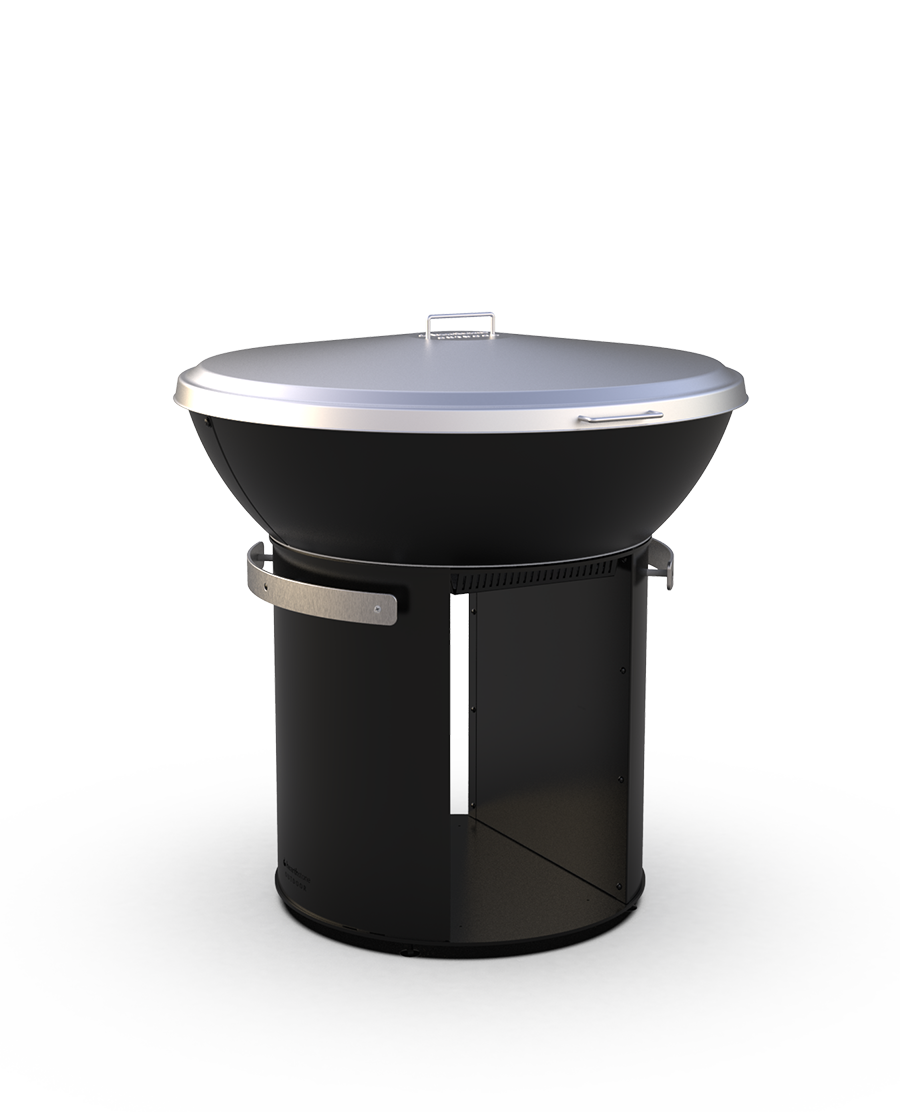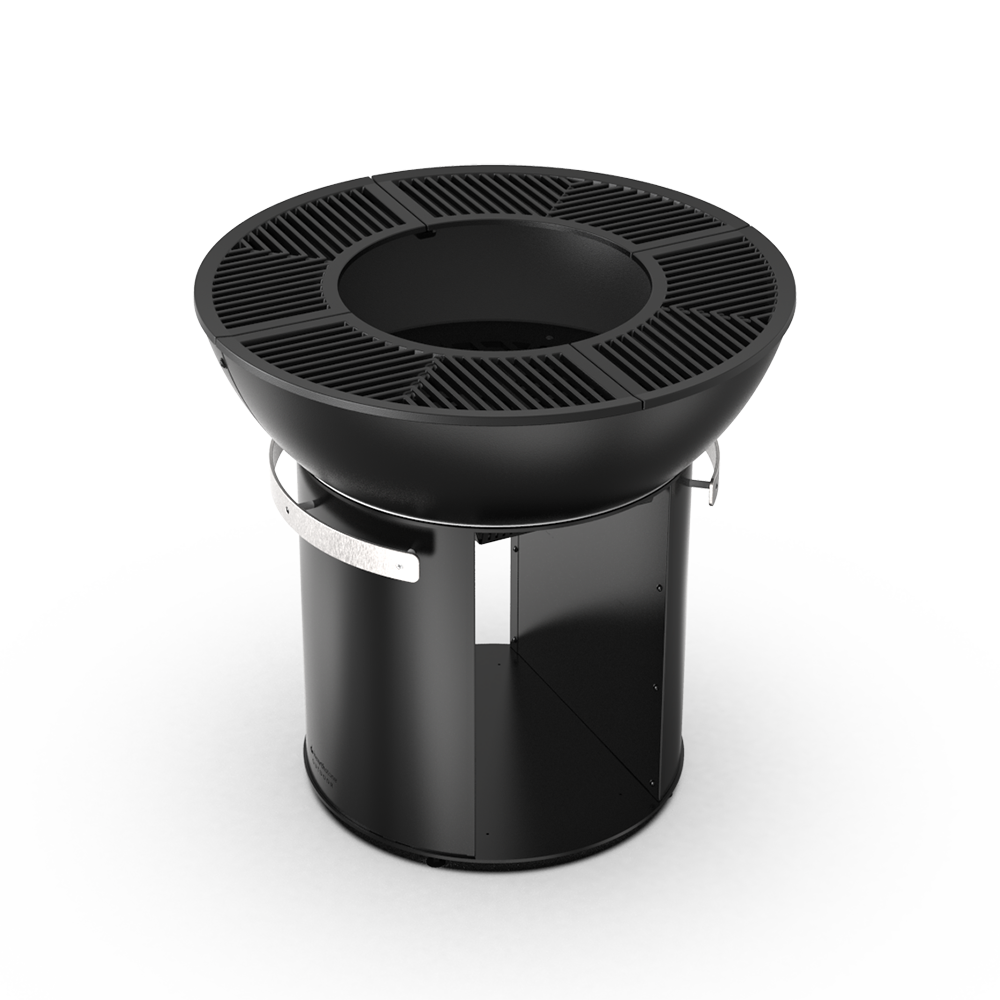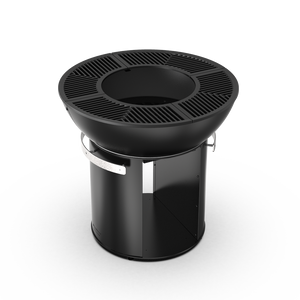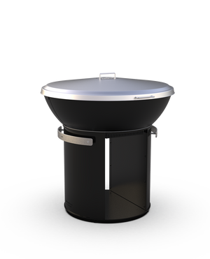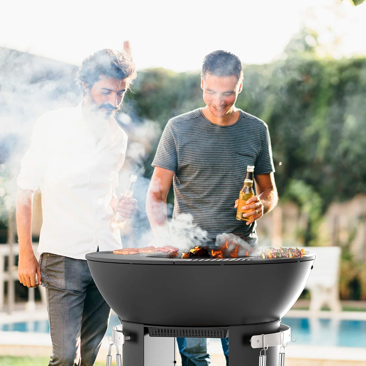 The 38 inch solid cast iron fire bowl delivers exceptional heat retention and even heat distribution, giving you reliable cooking results every time. The tall, powder coated steel stand provides ideal standing ergonomics along with a clean, industrial modern look. The integrated fire grate with LoSmoke technology encourages a cleaner burn, while the included stainless steel cover protects the fire bowl and keeps your setup looking refined.